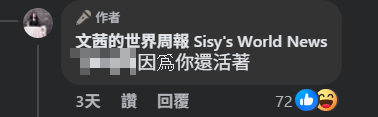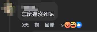 透過陳文茜上個月28日在臉書的發文可見到,有網友直接留言質問她:「怎麼還沒死呢?
