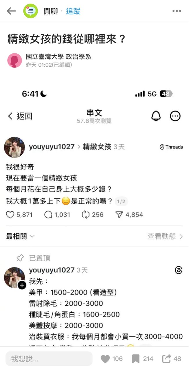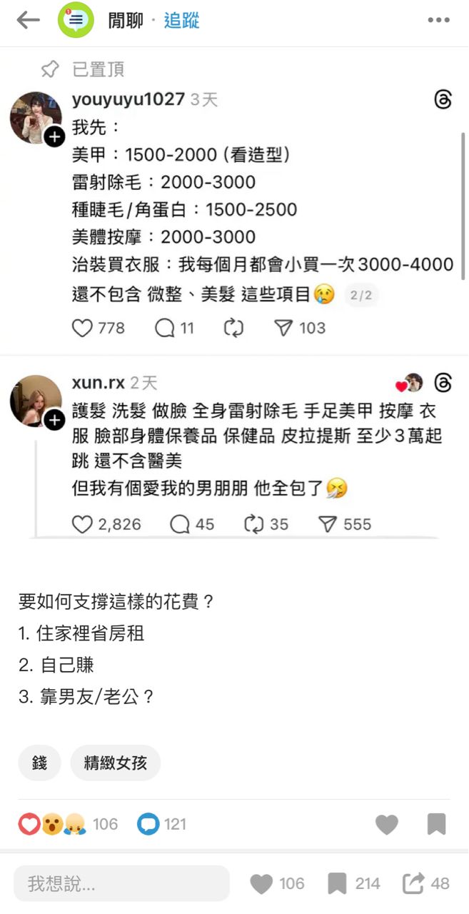 [問卦] 台女:精緻女孩的錢從哪來? - Gossiping 板