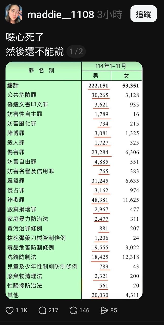 脆友去翻去年犯罪統計數據