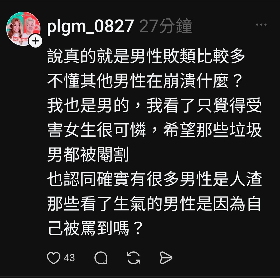 脆友:男性敗類就是比較多!
