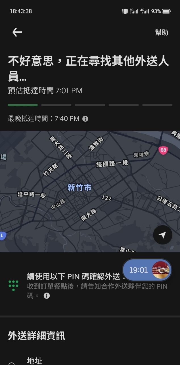 結果一有外送員接到我的單就被轉走了= =