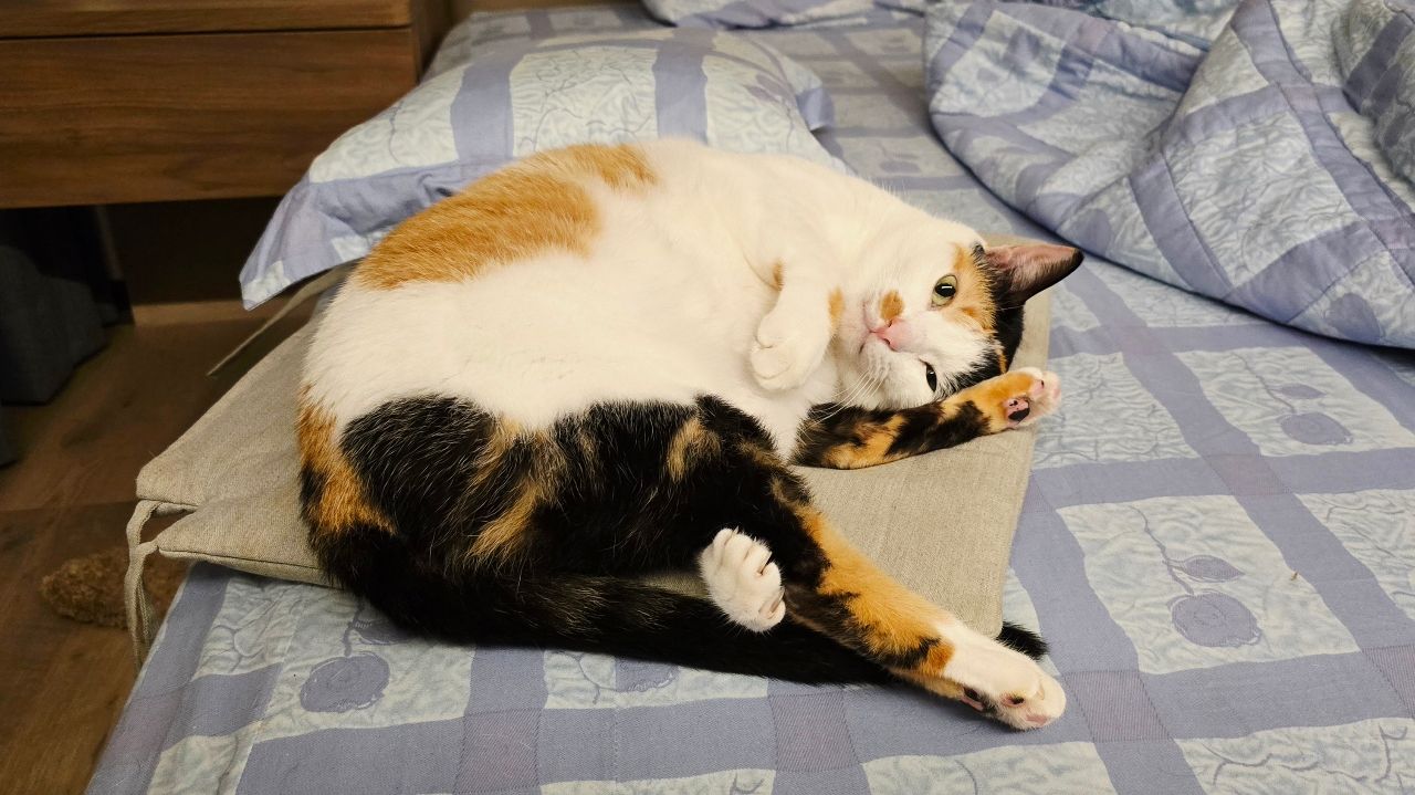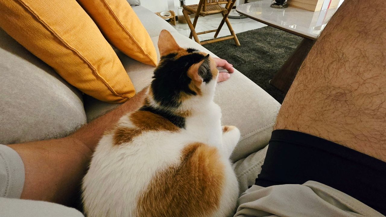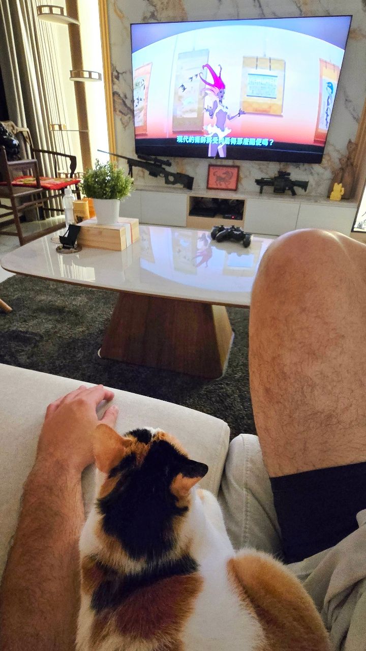 吃完窩沙發在看咒術廻戰,然後貓貓自己跑過來湊熱= =
