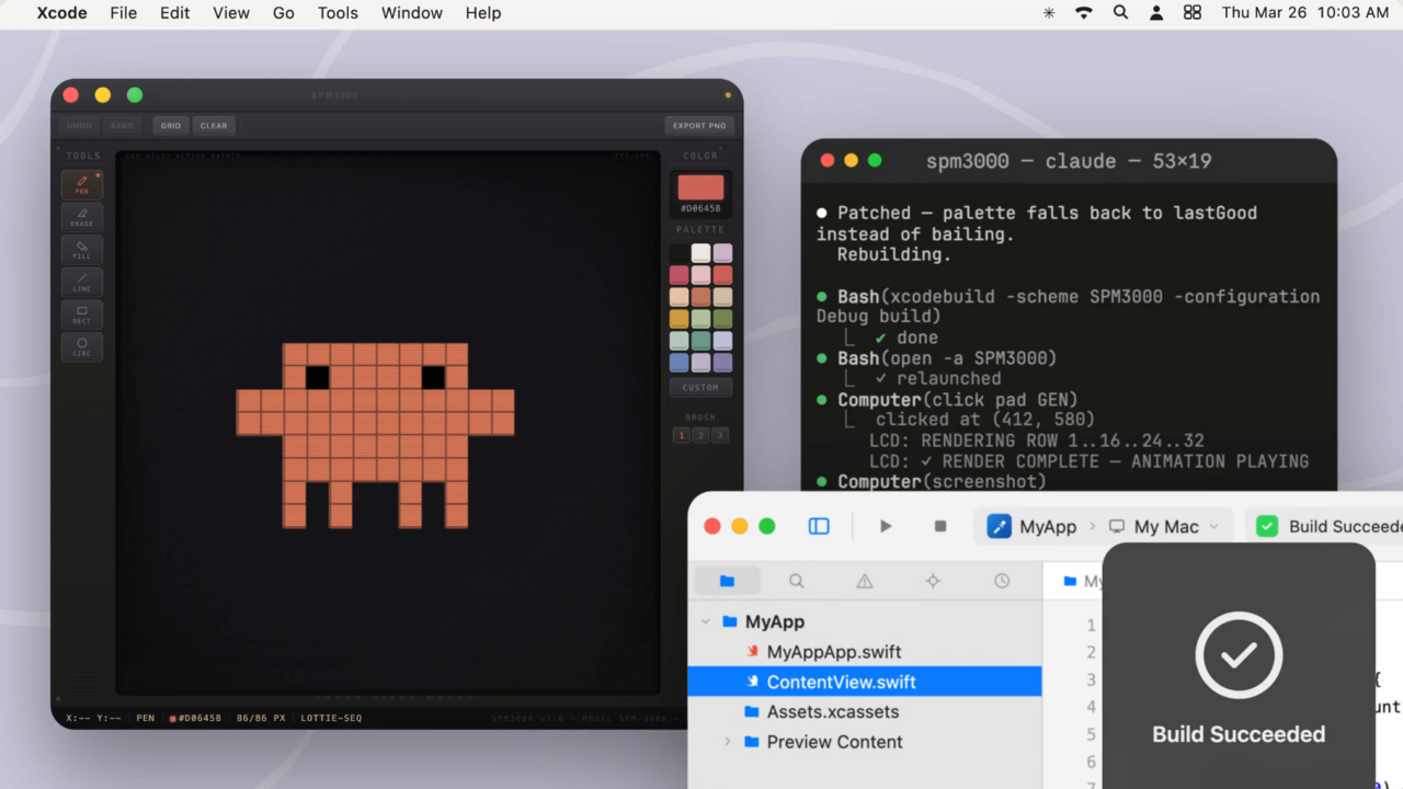 是能在 Mac 上開啟的應用程式,Claude 都可進行操作,包括:SwiftUI 編譯應用、