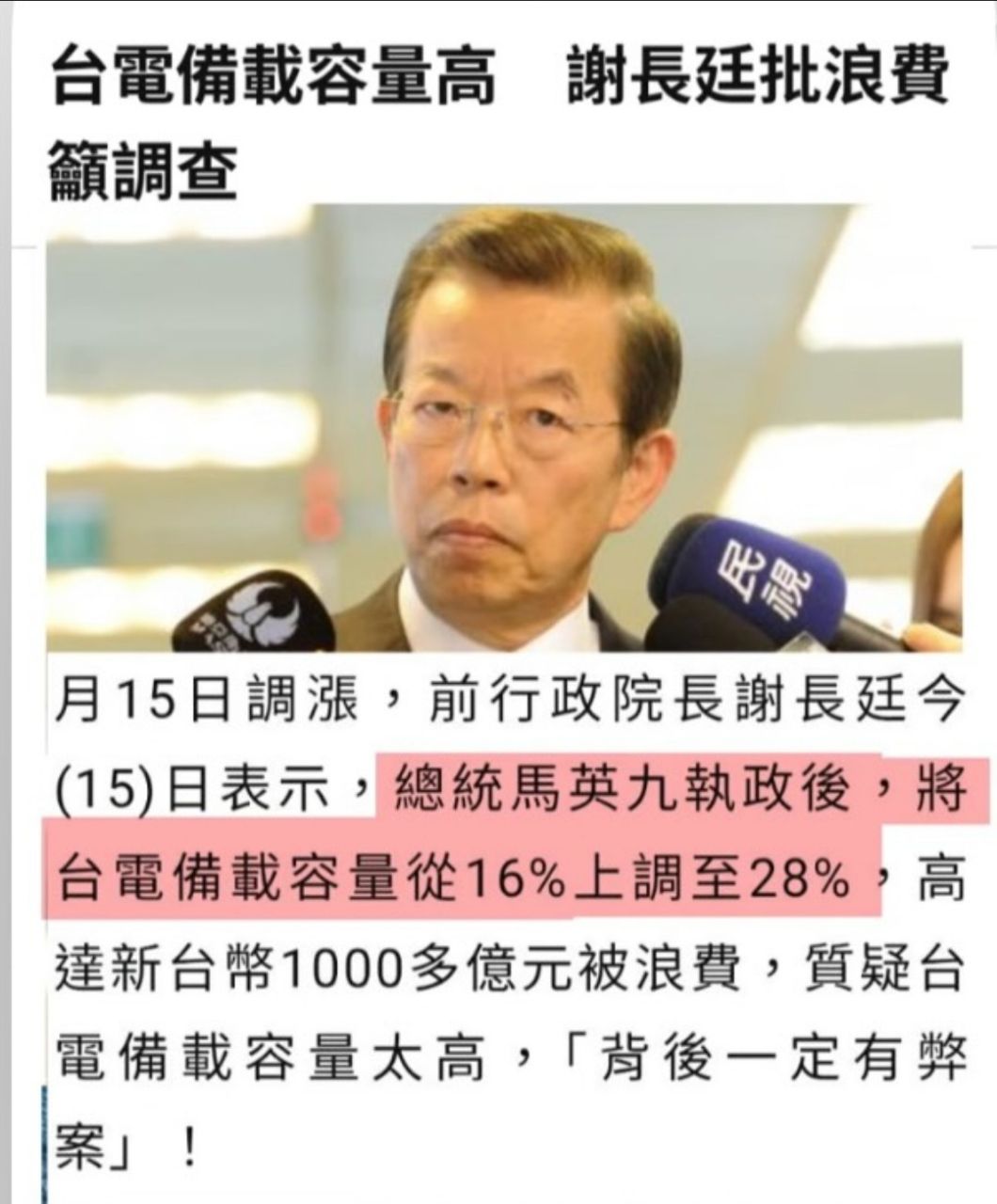謝長廷在臉書表示,核融合的原理被譬為人造太陽,號稱1公克重氫原料可以產生8噸石