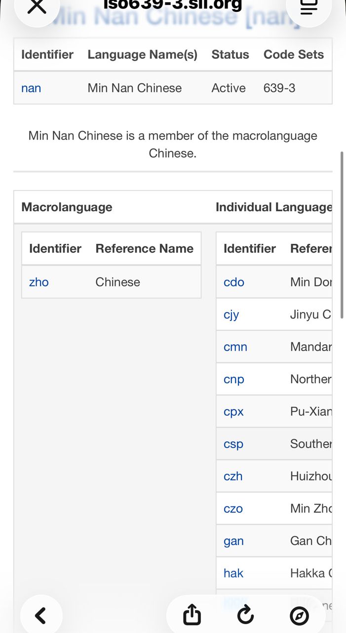 : : 如果台語真的是一種獨立於閩南語之外的語言,國際 ISO 為什麼沒給它一個獨立代