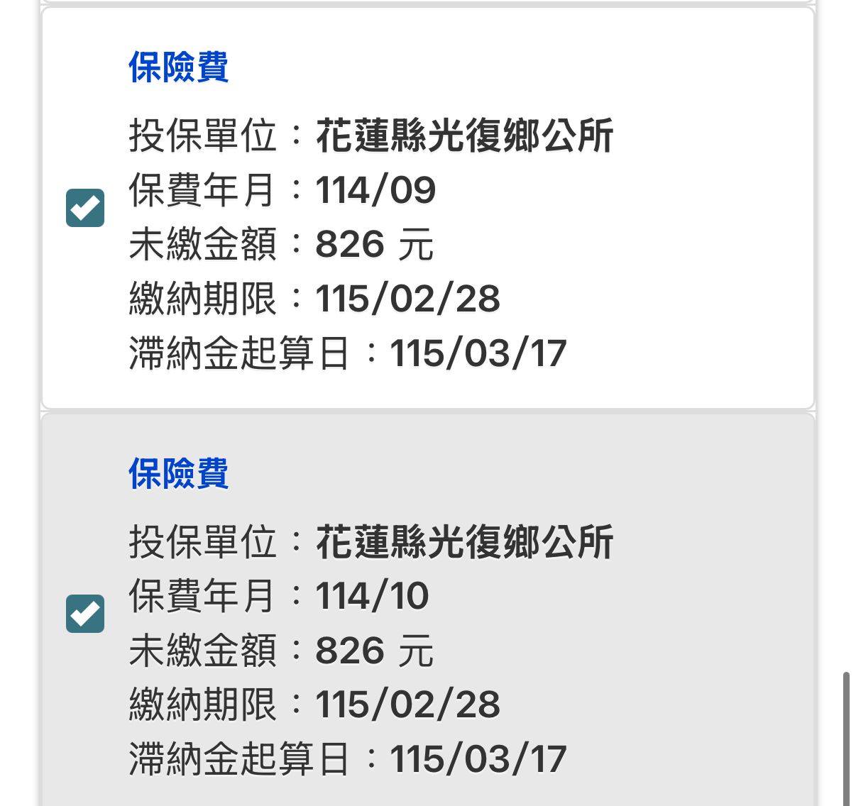 今天收到信件說我欠繳