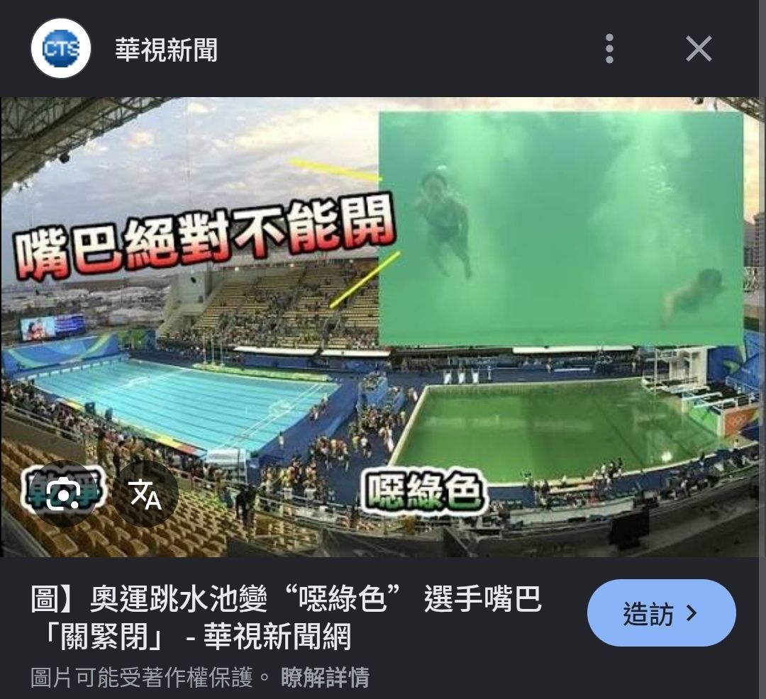 檢測,若選手或教練若發現異常可立即向場館反映,確保水質無虞。