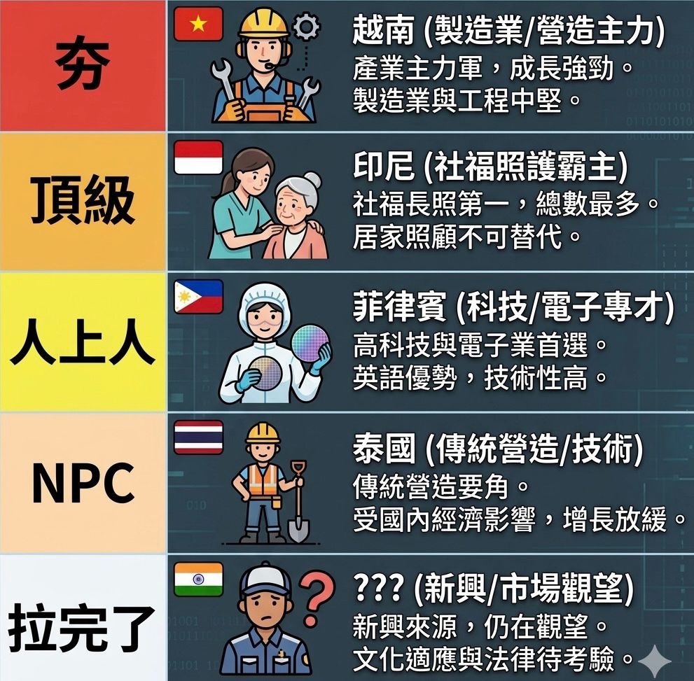 [問卦] 台灣移工排名(從夯到拉)