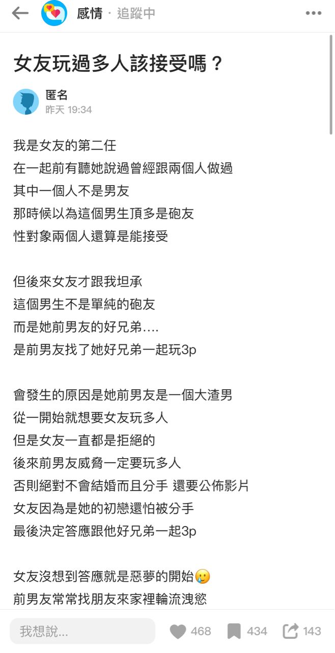 [問卦] 會接受玩過多人的台女嗎 - Gossiping 板