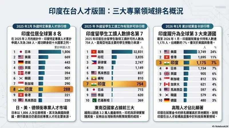 但台灣企業上真的對於印度人不熟悉嗎,事實並非如此。觀察在台工作簽證、就業金卡及