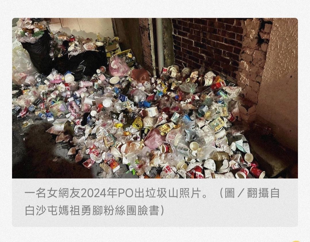 PO出垃圾山照片表示,白沙屯媽祖的香燈腳素質令人超級傻眼,竟然把別人的住家當作垃