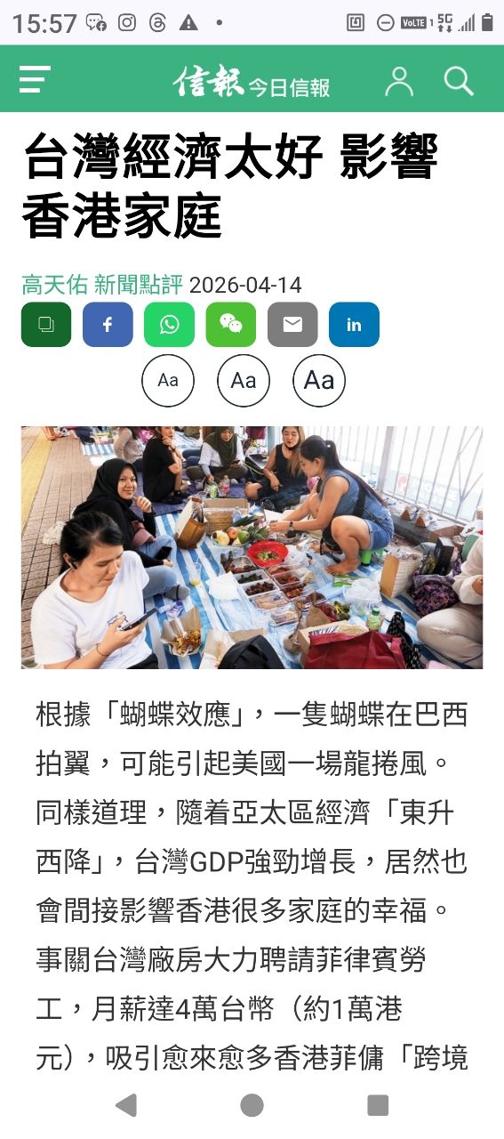作者 gigaman (pipi)標題 [問卦] 香港人說台灣經濟太好影響到香港家庭時間 Tue Apr 14 16:01:08 2026