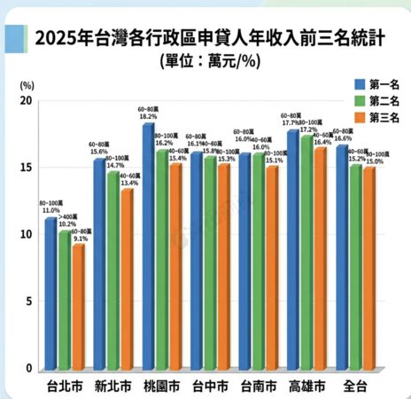 ▲2025年申貸人年收入前三名統計。(AI協作圖/記者項瀚製作,經編輯審核)
