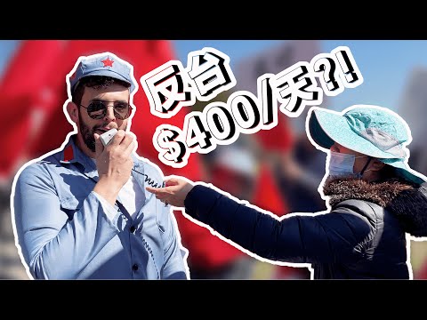 穿著五星旗服裝,混進去中共的抗議蔡英文群眾,還問他們去哪領錢。