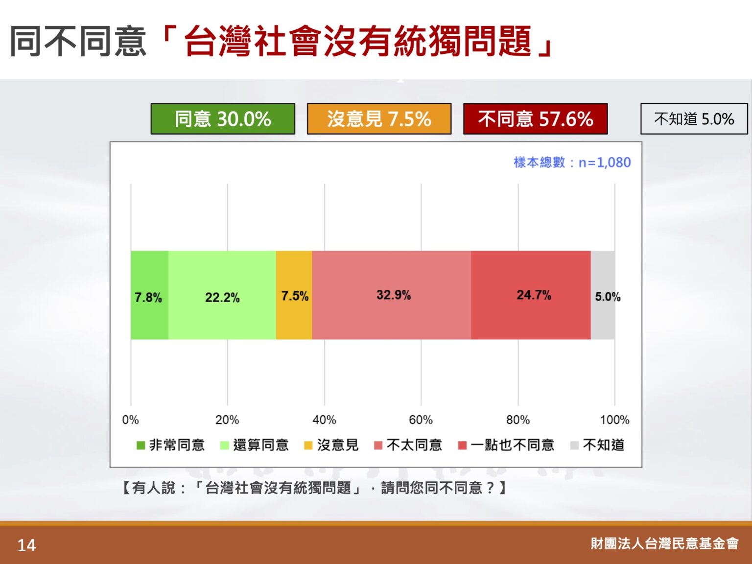 有人說 臺灣社會沒有統獨問題 請問您同不同意