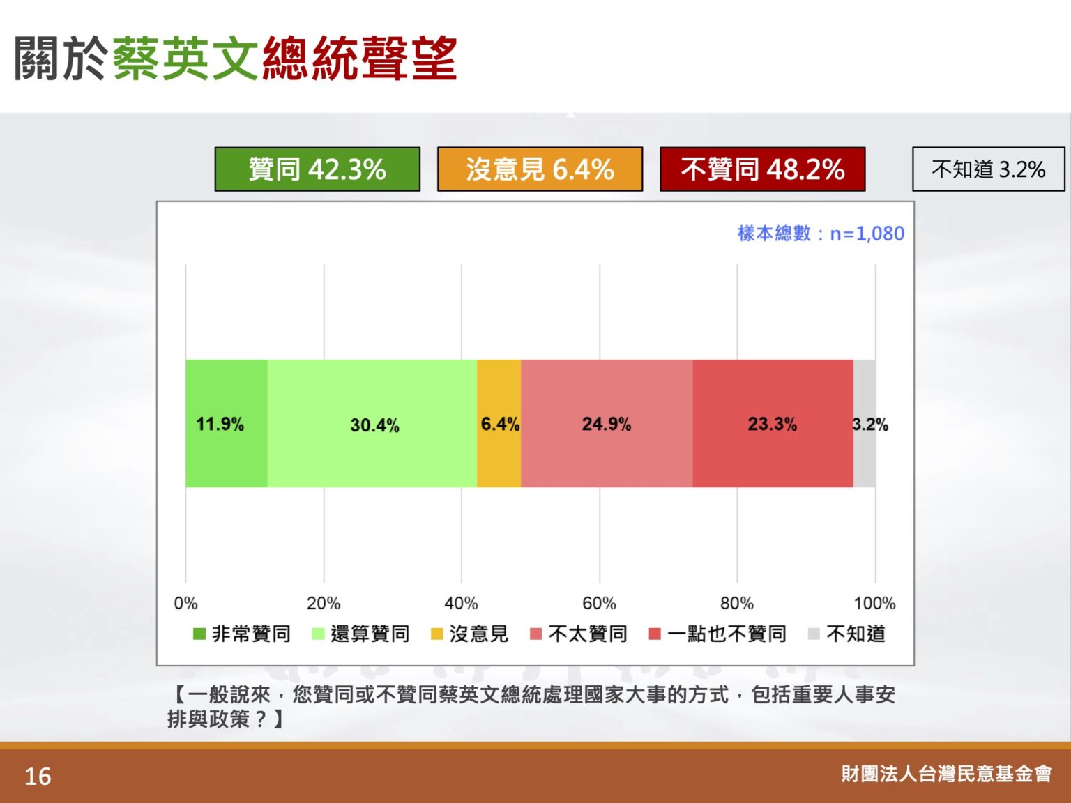 一般說來,您贊同或不贊同蔡英文總統處理國家大事的方式,包括重要人事安排與政策?