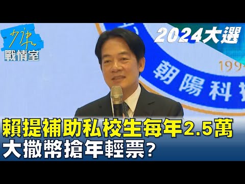 國民黨總統參選人侯友宜批評,民進黨對手賴清德「私立大學補助學費2.5萬元」