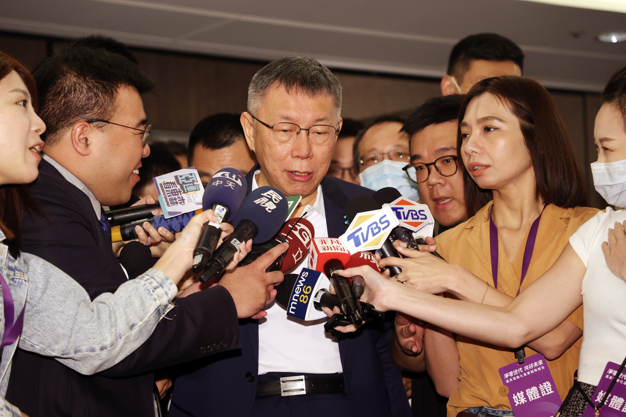 民眾黨主席柯文哲(中)今天出席「淨零世代 共好未來 」運具電動化產業戰略報告發表