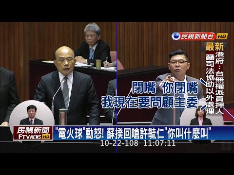 吵架的起因是立委要求行政院長答詢,行政院長說我剛剛已經回覆質詢你都沒在聽,現在