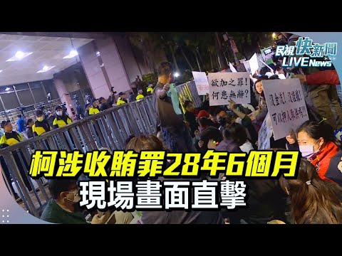 刑28年6月,褫奪公權10年,併科罰金5千萬 北檢大門湧多名小草 高喊:釋放柯文哲