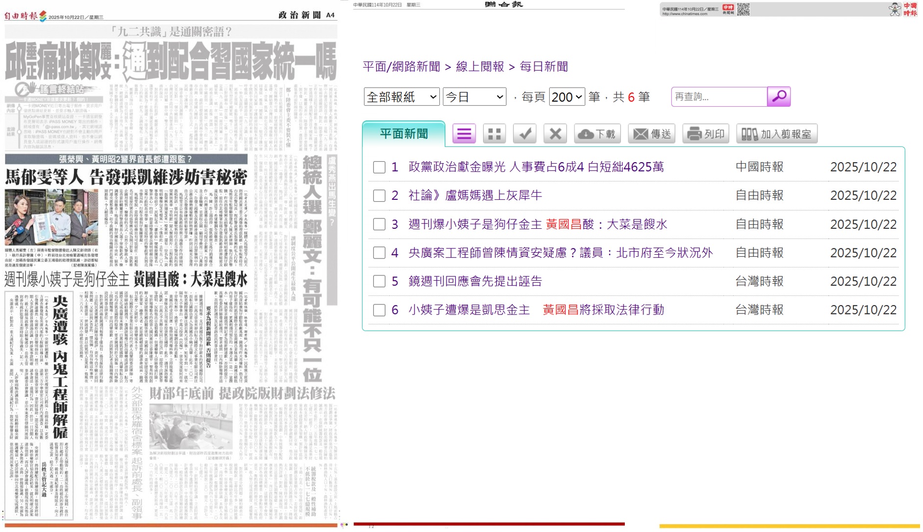 作者 wetteland ( )標題 [討論] 聯合報、中國時報今日又沒黃國昌新聞時間 Wed Oct 22 08:09:06 2025