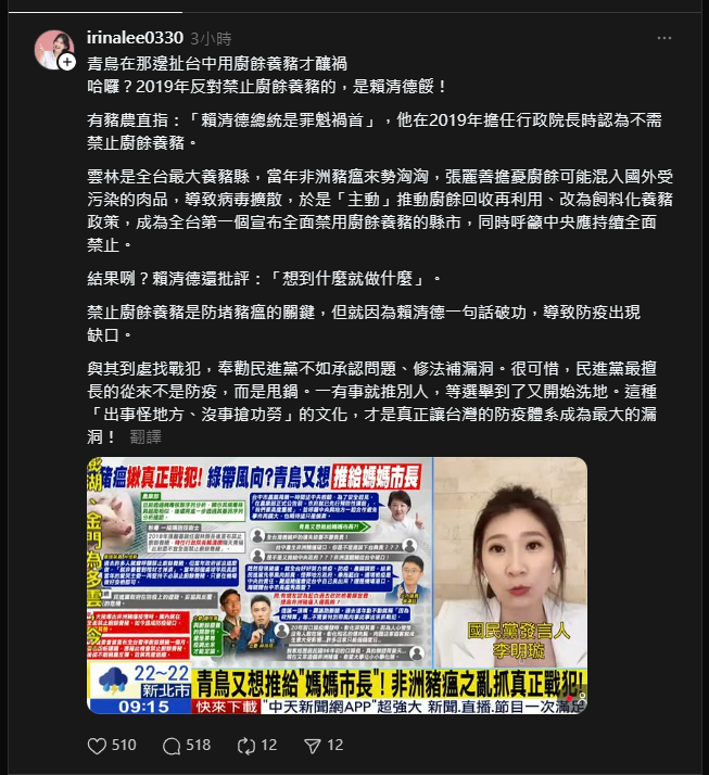 國民黨發言人李明璇啦 現在在講2019不禁廚餘的事情
