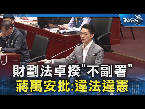 行政院長卓榮泰 稍早親自召開記者會 宣布將不針對立法院通過的「財劃法」副署 由於地方議會正值預算會期 此舉恐將影響地方政府的政策推動、財政安排 國民黨台北市長 蔣萬安率先發聲: 他直接痛批行政院違法 …