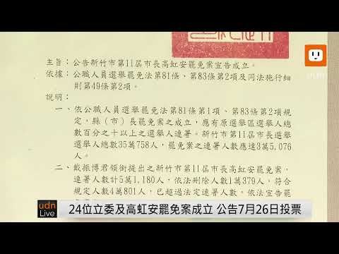 將會在7月26日舉行,新竹市長高虹安罷免案也在同日舉行。另外羅明才、顏寬恒、楊瓊