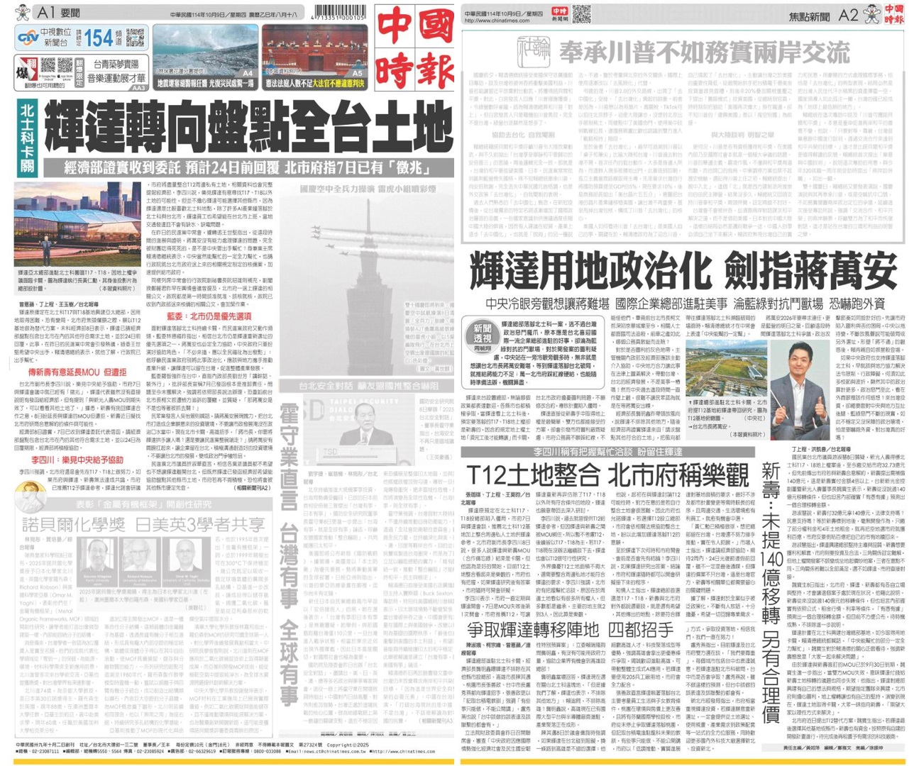 今天聯合報中國時報重點就是全力降低對蔣萬安的傷害,強調輝達還是愛台北市。