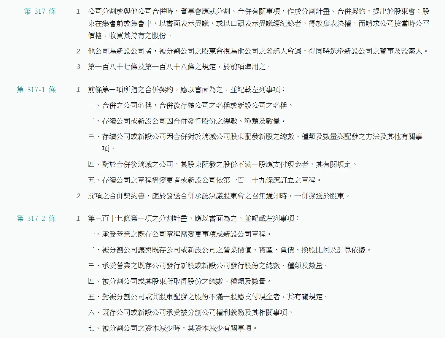 若公司發生「合併」、「分割」、「繼承」等,公司法第18條、第317條以下規定: