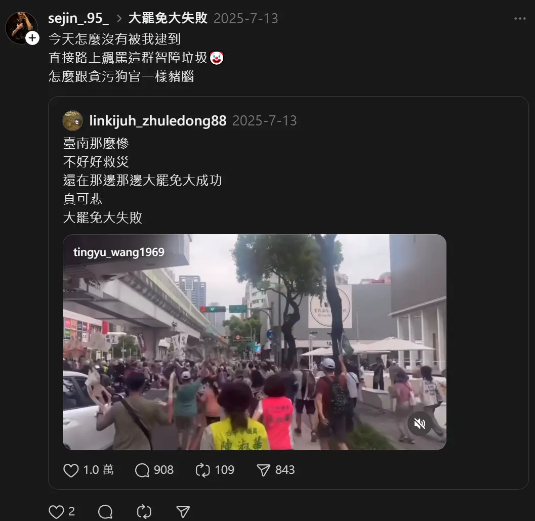 推 dos01: 藍白賤種就是最卑劣的畜生 直接扔進焚化爐哈哈哈哈!2F 210.209.164.247 台灣 11/27 19:13