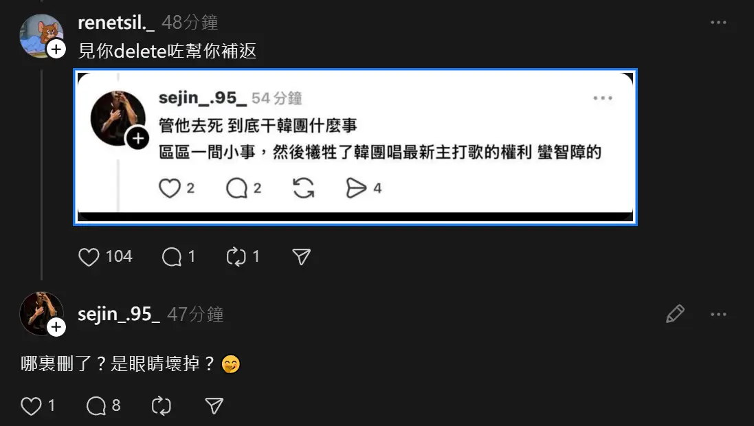 然後他刪了留言