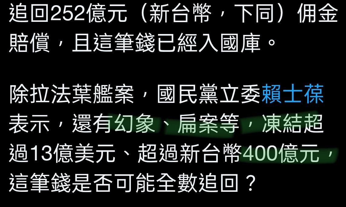 [討論] 幻象案扁案400億元沒追回,又要1.25兆