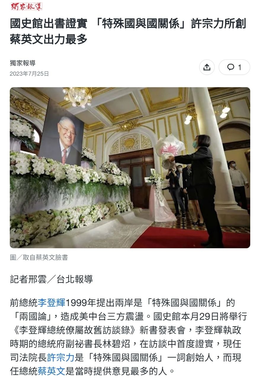 : 有人搞不清楚,兩國論是李登輝時代提出來