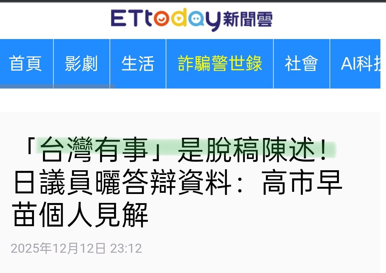「台灣有事」是脫稿陳述!日議員曬答辯資料:高市早苗個人見解 | ETtoday國際新聞 |