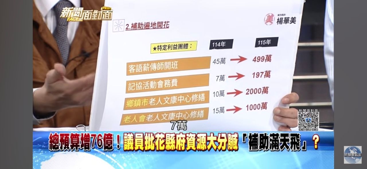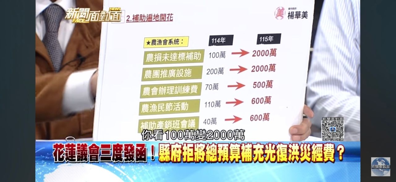 上星期新聞面對面尚公拿了幾張花蓮的預算,
