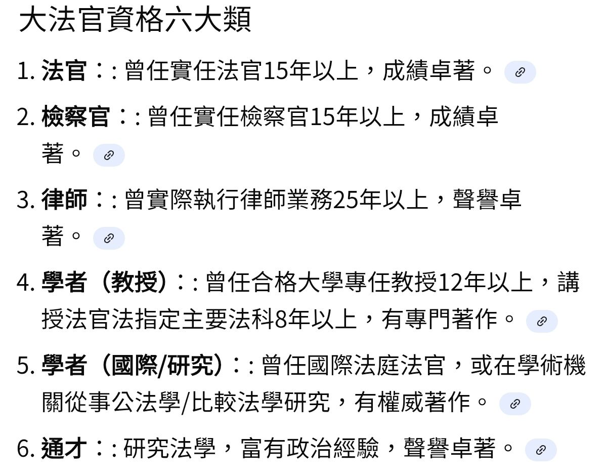 → Borges: 自己去看大法官資格第五項寫什麼6F 114.136.111.54 台灣 12/18 13:43