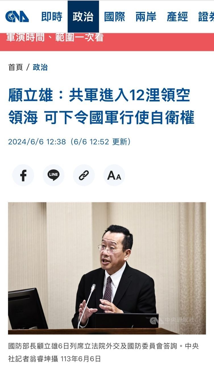 是不是進入12海里就真的要行使自衛權了?請賴總統和國防部長回答一下啊