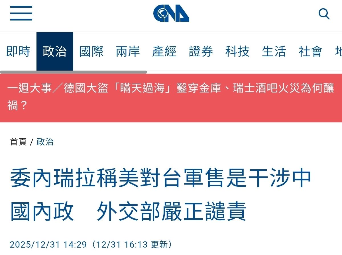 外交部今天表示,嚴正抗議、譴責委內瑞拉外交部妄稱美對台軍售是干涉中國內政、破壞區域穩定說法。委國與其無禮貶損他國主權,不... ...