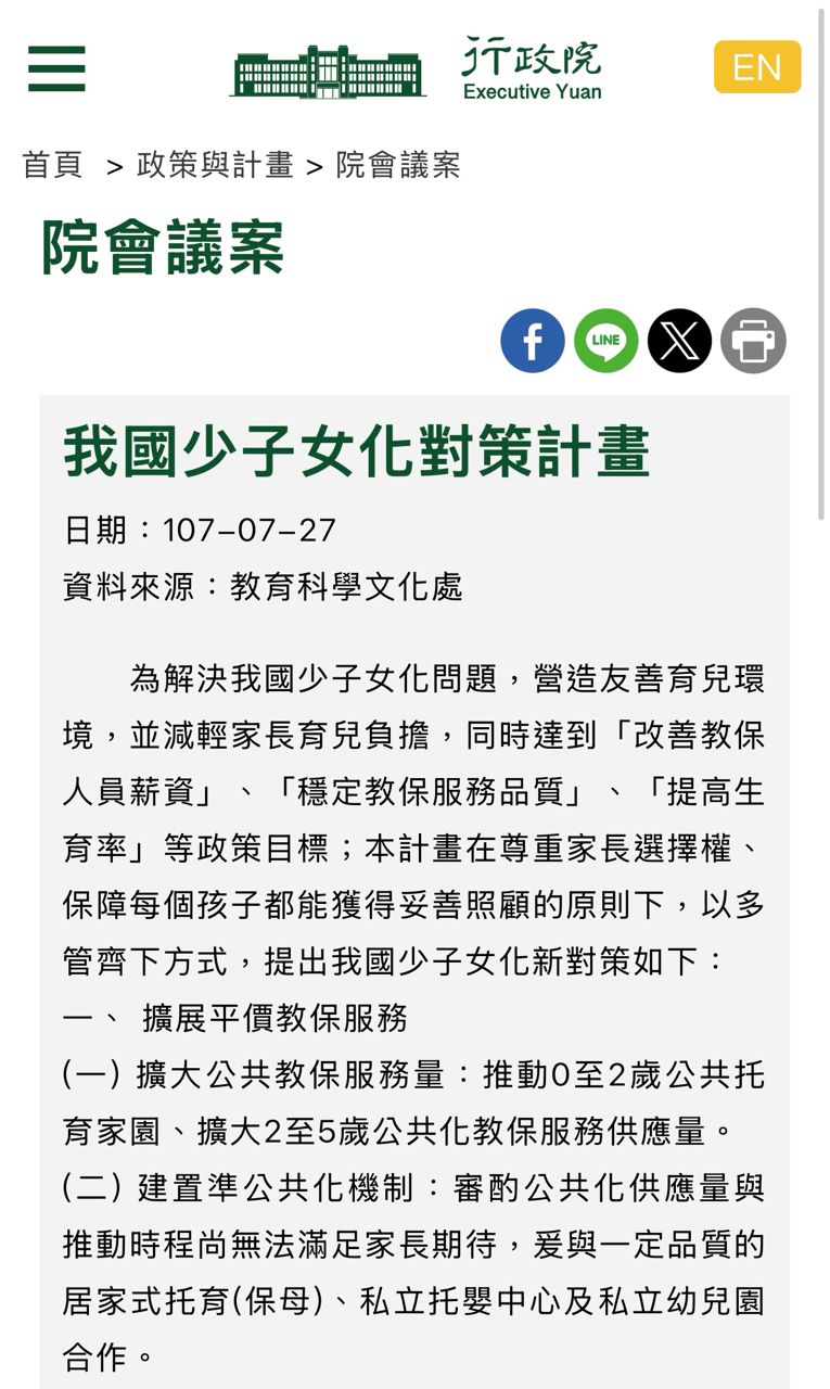 策辦公室」,2018年則進一步拉高層級,由行政院主導提出少子女化對策計畫。