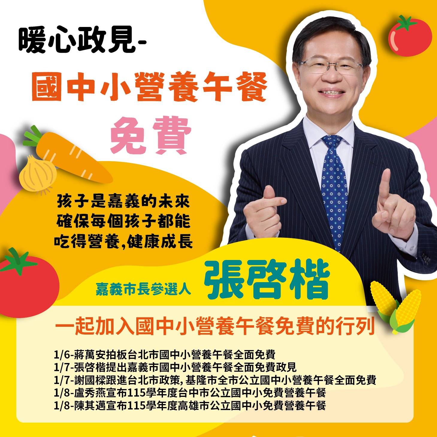: 餐免費政策的支持,「包括高虹安市長以及張啓楷委員等民意代表」。