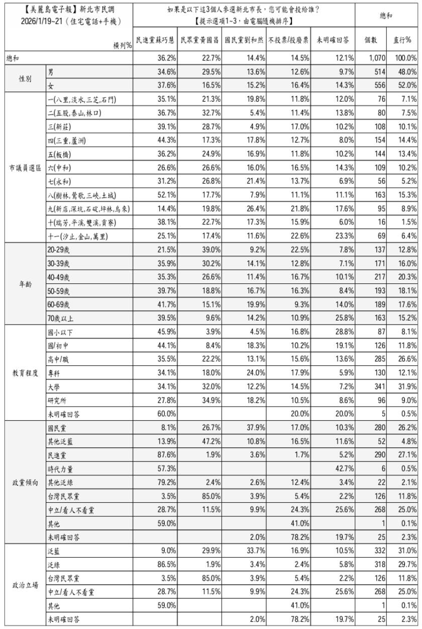 對了這份民調是泛藍+民眾黨為調查多數喔