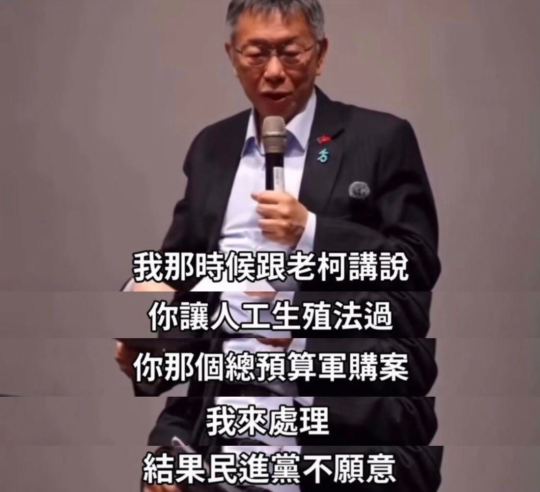 : 在演講中講到說 他有找柯建銘喬,要柯建銘幫民眾黨過人工生殖法,然後他(柯文哲)