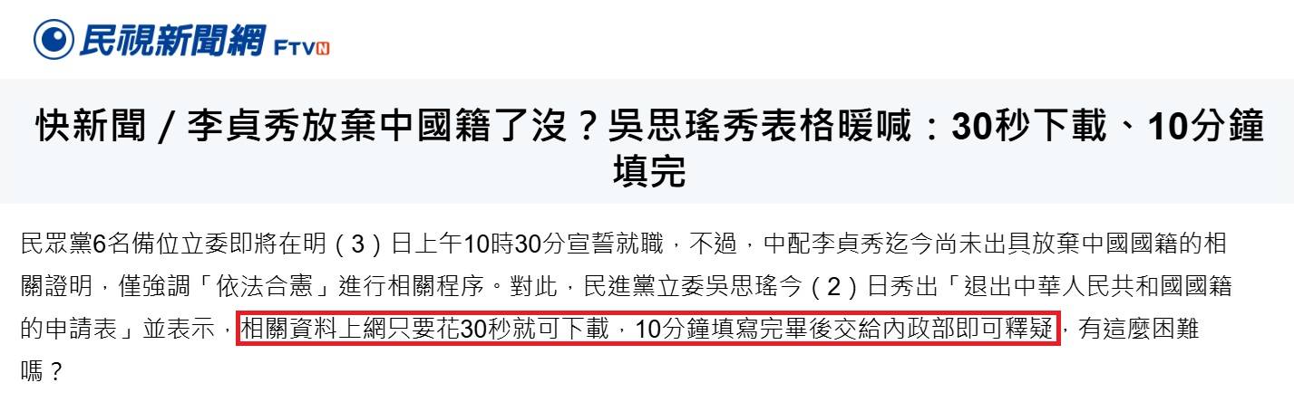 吳思瑤指出,這是公開資訊,內容約7、8頁,認真填寫應當不到10分鐘就可以填寫完成,