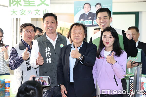 王世堅今陪同3位新人中山大同賴俊翰、松山信義呂瀅瀅、大安文山陳聖文登記參選議員