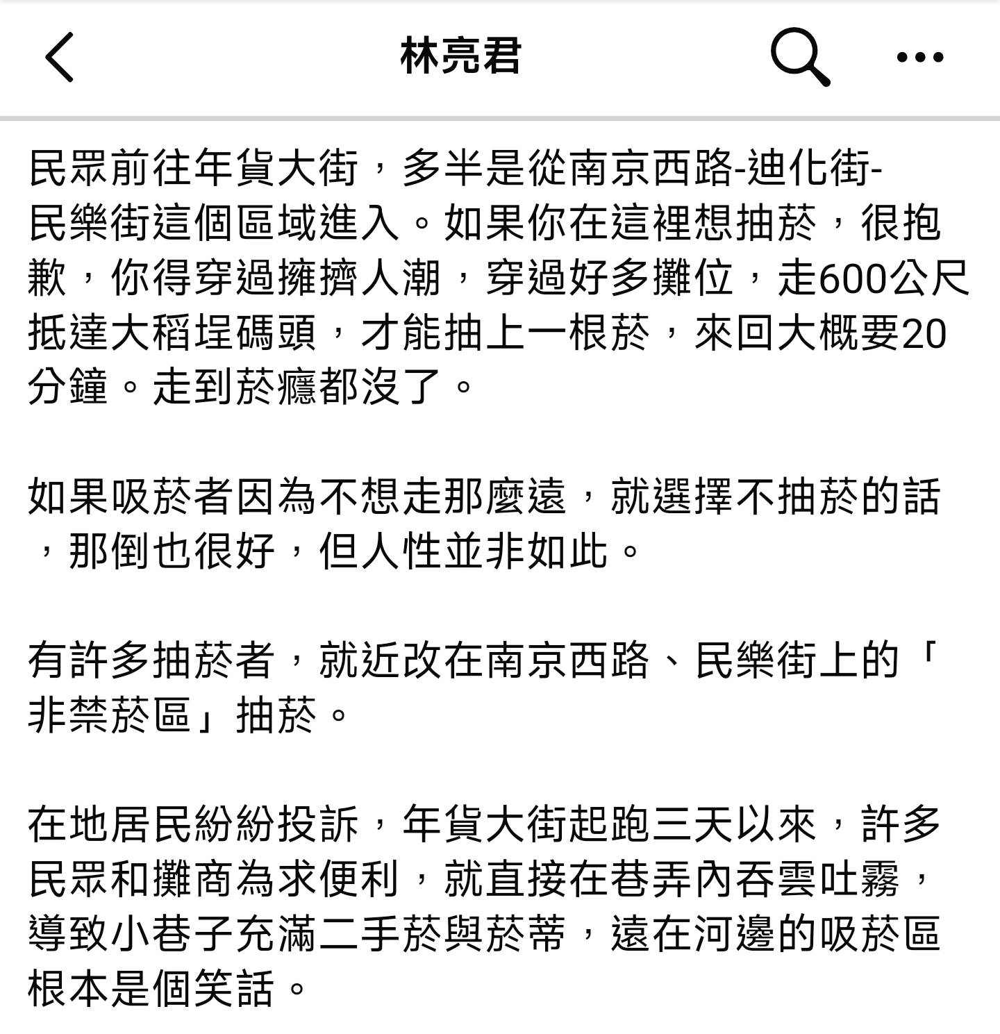 因為根本不用走20分鐘到規劃的吸菸區 走到年貨大街旁邊沒在範圍內的非禁菸區