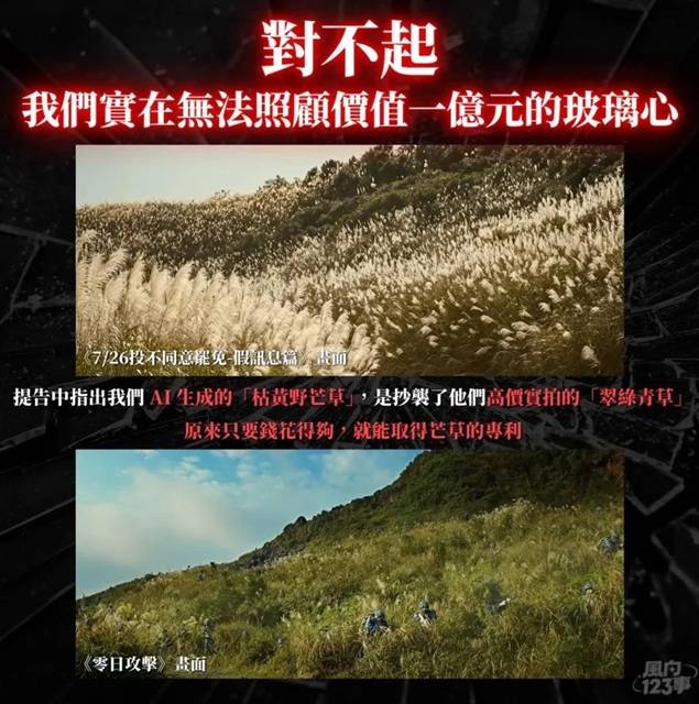 出我們用 AI 生成的「枯黃野芒草」,是抄襲了他們花高價實拍的「翠綠青草」。原來只