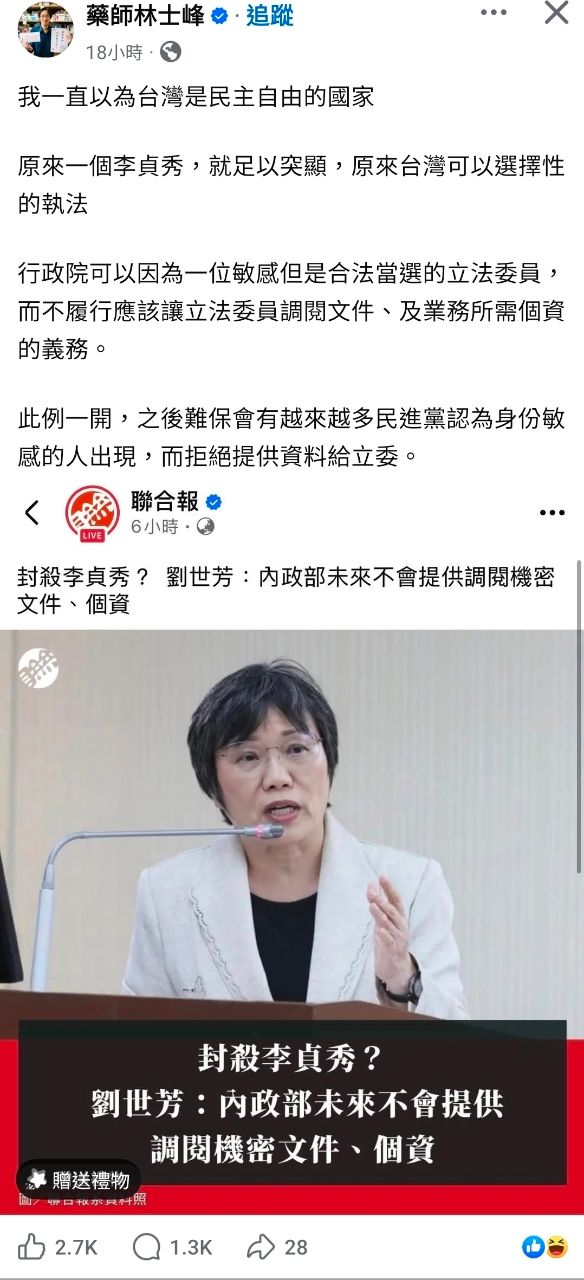 [轉錄] 李貞秀FB 這份非機密 內政部 給還是不給 - HatePolitics 板