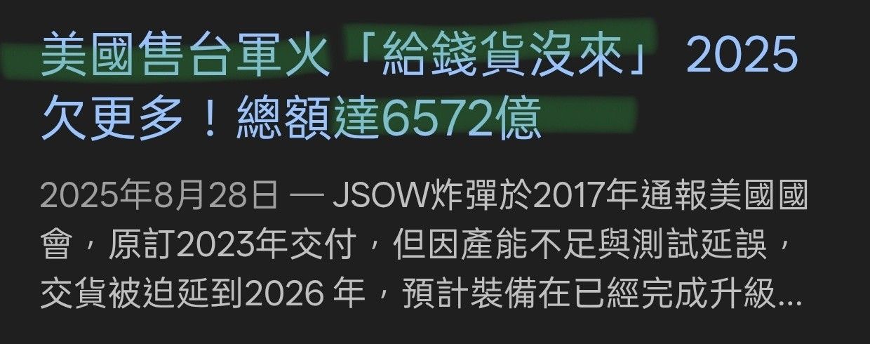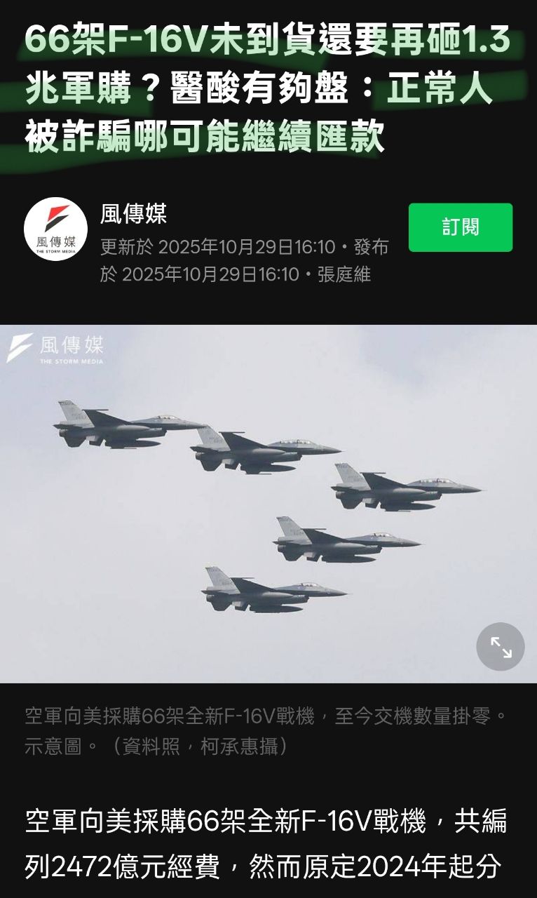 2026年一架都沒到貨,什麼時候會到貨也不知道,然後還要再給1.3兆,不然可能會拿不