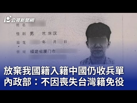 放棄我國籍入籍中國仍收兵單 內政部:不因喪失台灣籍免役|20250613 公視晚間新聞